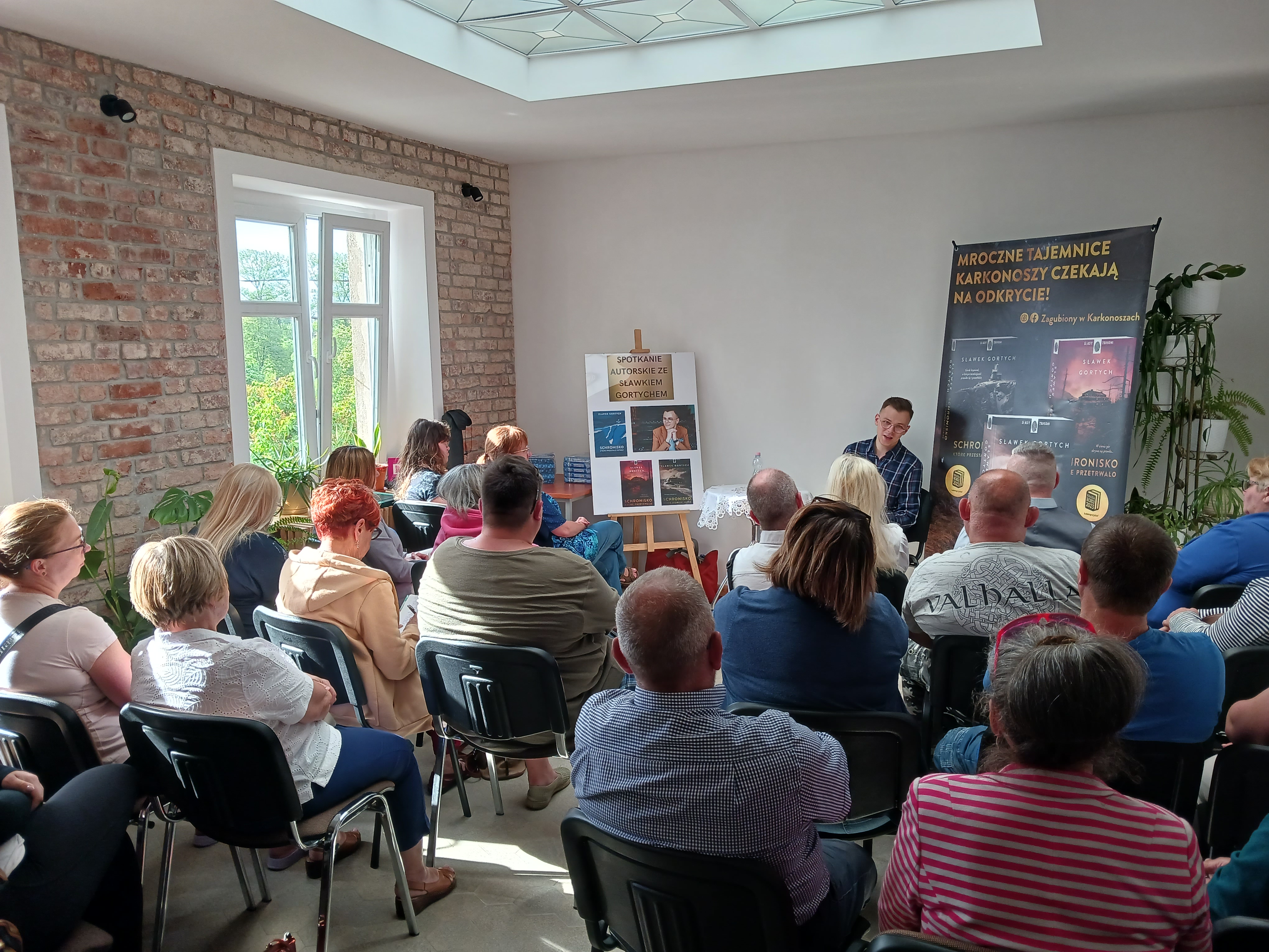 To było spotkanie autorskie (16.05.24r.), którego nie da się szybko zapomnieć! Sławek Gortych to młody, utalentowany pisarz, zyskujący coraz większą popularność dzięki 3 książkom. Wspaniale opowiadał o swojej twórczości, pasji, życiu zawodowym i prywatnym. Frekwencja spotkania była zadziwiająca i żaden gość nie wyszedł zawiedziony. Była możliwość również kupienia książek wraz z autografem i dedykacją, robienia zdjęć pamiątkowych oraz osobistych rozmów z autorem przy stole z poczęstunkiem. Trudno było pożegnać Pana Sławka, mamy jednak wielką nadzieję, że niebawem znowu będziemy mogli się zobaczyć.